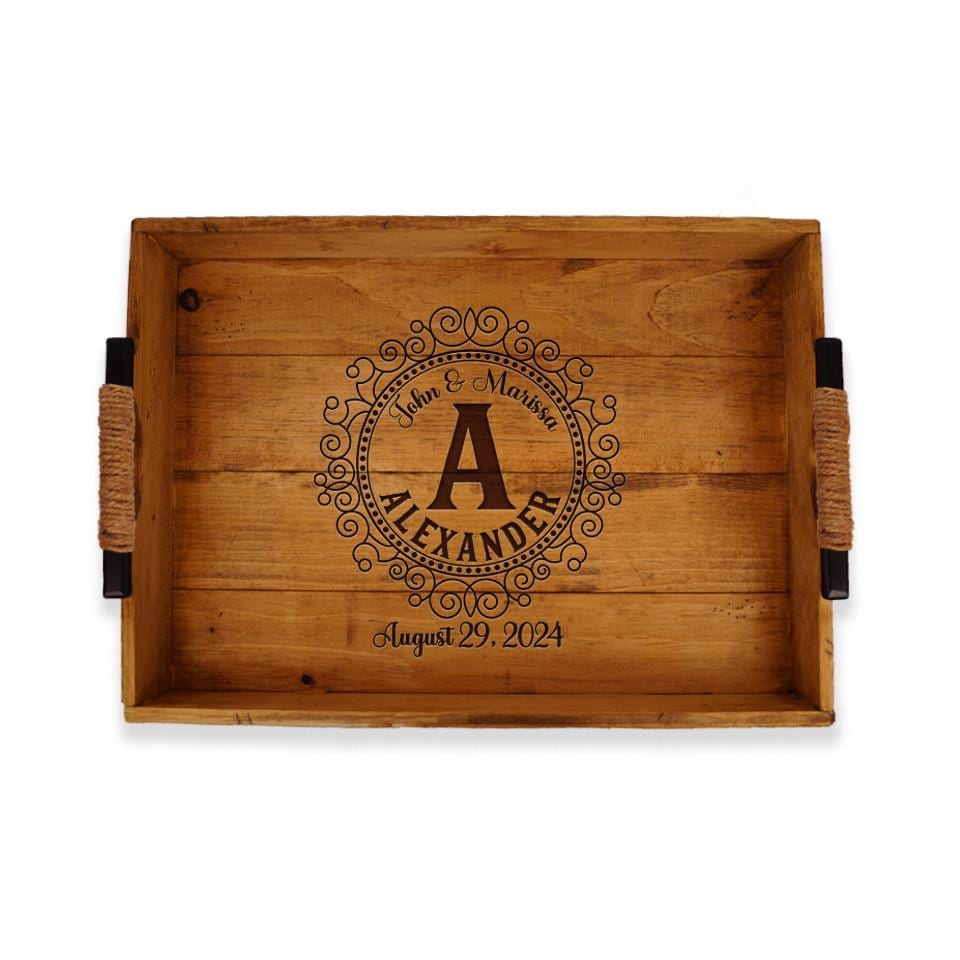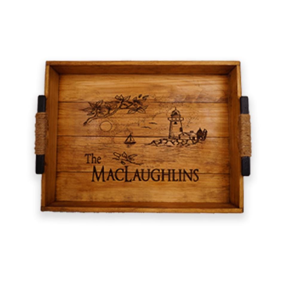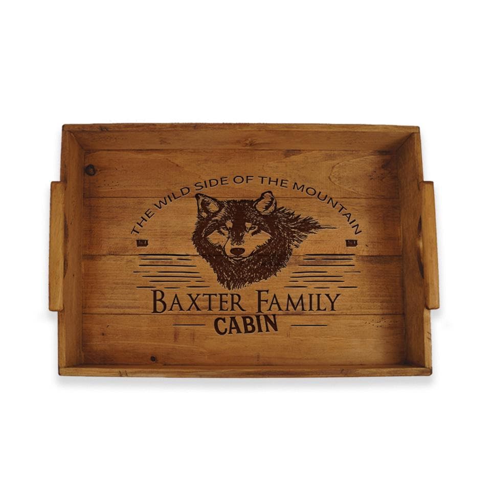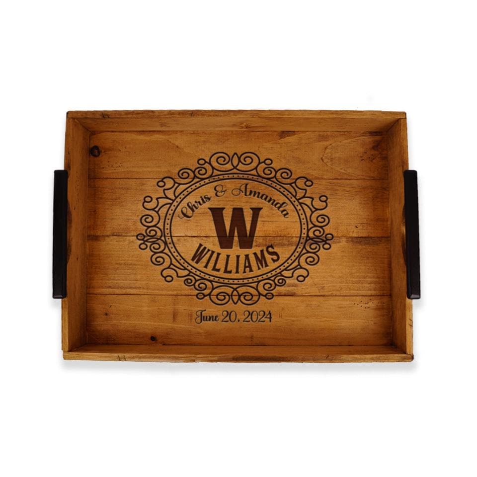 Personalized Wood Serving Tray: Engraved Family Name, Design Choices, Distressed Wood, Gift Ideas